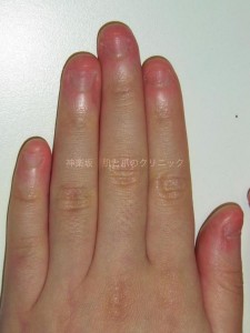 こんにちは 野田真喜です 毎日本当に暑い日が続きます。皆様、熱中症にはくれぐれも注意してお過ごし下さいね。外でお過ごしの方は、長時間日なたにいることを避け、喉が乾いたと感じる前からコップ半分でも、10分おきくらいで飲むようにしてくださいね。 今日は、爪噛み癖についてです。 爪噛み癖は3歳以降に出現することが多く、10才くらいをピークとして多くは自然になくなっていきます。 しかし、大人になっても止めることができなかった場合や、思春期以降に出現した場合は治療はなかなか困難です。 自覚していても止めることができないのが癖。 医学的には、自分の体をいじる癖が固定してやめられない状態を『神経性習癖』と呼びます。 ![]() 爪は小さくなり、爪の先はノコギリ状にギザキザとしています。そして、指先はポテッと丸くなっていることが特徴です。 長年にわたる習慣を止めることは、非常に困難です。一人で悩まずに病院に相談しましょう。とは言っても普通の病院では対応はなかなか難しいかも知れません。 心のケアは、メンタル科の先生がご専門ですが、 当クリニックでは、見た目の改善のお手伝いができます。これが治療の大切な一歩となります。 当院の噛み爪、爪いじりの治療は15歳上限定となっております。それ以下の方は小児科、心療内科などでのご相談をオススメしています。ご理解いただきますようお願い申し上げます。 治療開始当日です。 綺麗な人工爪は通常の長さのがあり、容易には噛み切れません。 ⬇️ 治療開始2ヶ月後 自爪が先端までキレイに伸びて、指先の形も改善されています ![]() ここまで頑張っていただくと、人工爪は終了、治療も終了です ![]() 強いストレスにさらされて、再発してしまう方もいらっしゃいますが、 その場合はご希望があれば何度でも繰り返し人工爪を作ることができます。 しかしほとんどの方が、再発なく卒業されていきます。 頑張って治したいとお思いの方は、ご相談下さい。 神楽坂 肌と爪のクリニックhttps://www.hadatotsume.com |
