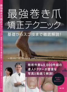 院長と副院長が執筆した医師向けの巻爪治療専門書。圧倒的な症例数により積み上げられたノウハウを惜しみなく公開しています。巻き爪矯正や手術に本格的に取り組んでみたい医師の皆さんは是非ご一読下さい。巻き爪治療について深く知りたいとお考えの一般の方もご購入いただけます。https://www.amazon.co.jp/exec/obidos/ASIN/4524229620/honnoinfo-22/